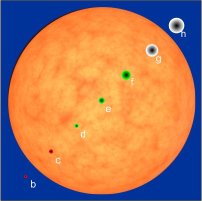 drawn to scale against their star. The