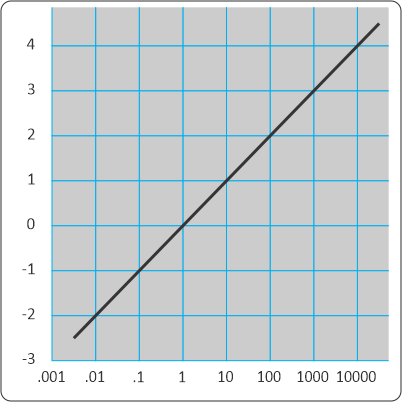 “Log-linear relationships are a biggie. We techies use them a lot to handle phenomena with a wide range. Rather than write 1,000,000,000 or 109, we sometimes just write 9, the base‑10 logarithm. The pH scale for acid concentration is my favorite example. It goes from one mole per liter down to ten micro‑nanomoles per liter. That’s 100 to 10-14. We just drop the minus sign and use numbers between 0 and 14. Fifteen powers of ten. Does Physics have any measurements that cover a range like that?”