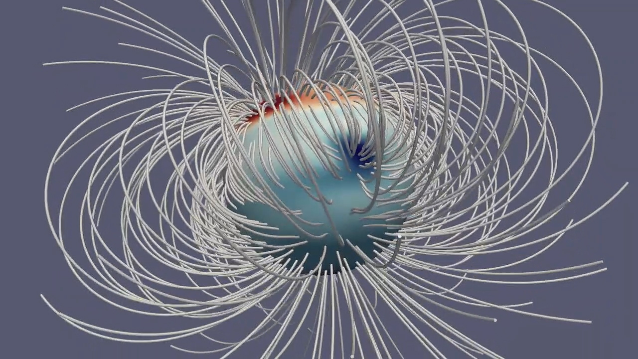 “Mostly. I did admit something like that might work at the poles. Anyway, I’ve liked the concentric cylinders model for quite a while. This paper I just read says I’m almost but not quite right. Kaspi and company’s data says the cylinders are cone sections, not cylinders, and they’re not north‑south symmetrical.” <dialing up another image> “It’s like this except I’ve exaggerated the angles.”