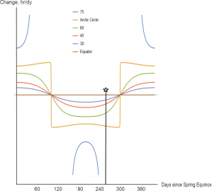 “So according to your instruments you’re flying a straight line. But if someone were tracking you from the ISS they’d say you’re flying along a Great Circle, the intersection of Earth’s surface with some planar surface. You prefer Great Circles because they’re shortest‑distance routes. That makes them geodesics for travel on a planetary surface. Each Circle’s a curve when viewed from off the surface.”