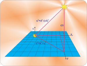 “Time has entered the picture. In Minkowski’s framework you handle two ‘events’ that may be at different locations and different times by using what he called the ‘interval,’ s. It measures the path between events as