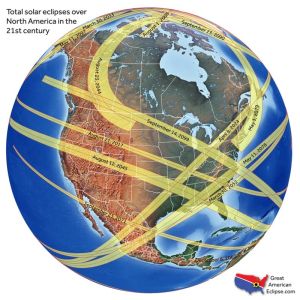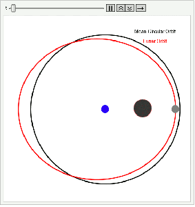 Moving the oval so that there’s only one close place and one far place (astronomers call them perigee and apogee) meant that I also had to move the blinking eclipse markers. I think the new locations do a better job of showing why we have both annular and total eclipses. You just have to imagine the Sun being beyond the Moon in each special location so that the eclipse shadow meets the Earth.